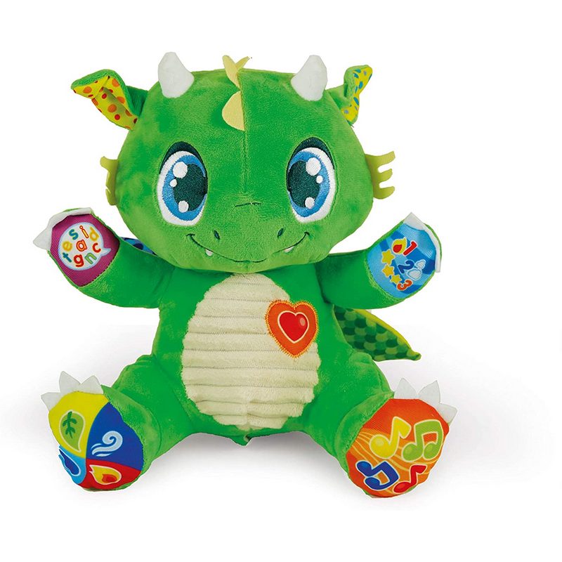 Simpatico draghetto in peluche interattivo, ricco di effetti sonori e luminosi, sarà un perfetto compagno di giochi per i più piccoli, aiutandoli a stimolare capacità manuali e uditive portando il bambino alla scoperta del linguaggio.
